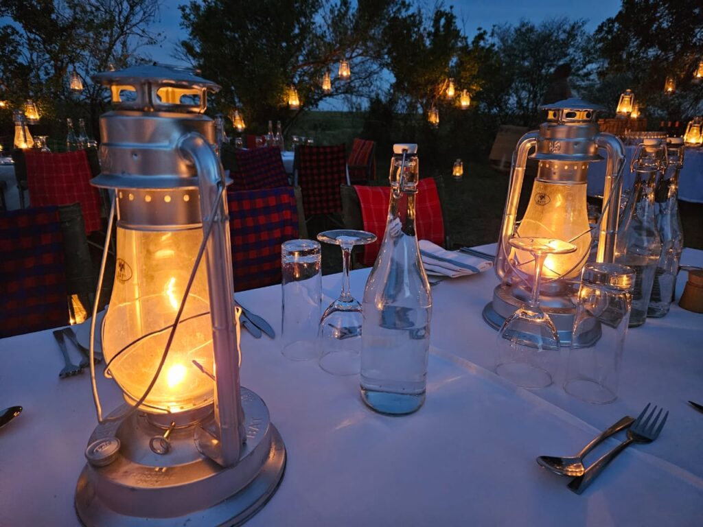 An Evening of Fireside Elegance (7:30 PM onwards): You return to a camp transformed by the soft glow of lanterns. After a luxurious bath or shower in your suite, you emerge for the evening. The atmosphere at the bar is convivial, a place to share stories with fellow travellers. Dinner is the main event. There are no menus. The chef discusses the day’s offerings with you personally, crafting a meal to your exact tastes. You might dine in the elegant main area, on the deck under a blanket of stars, or for a truly special occasion, in the enchanting boma, a circular enclosure where a bonfire crackles and Maasai warriors share their traditional songs and dances. Your evening concludes with a walk back to your suite, escorted by a Maasai askari (watchman), under a sky so clear you can see the Milky Way.