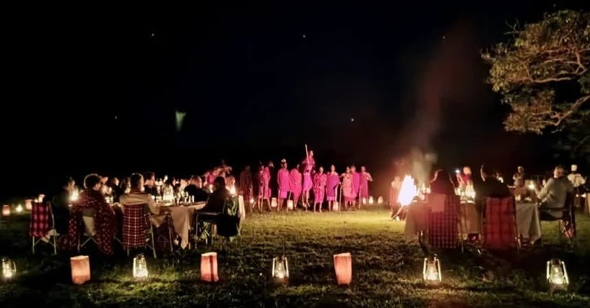 - Elegant Dinners: Enjoy a candlelit dinner on the main deck, by the pool, or in the privacy of your suite. For a truly magical evening, join other guests for a bush dinner, gathering around a roaring bonfire on the banks of the Mara River for exquisite food, fine wine, and a captivating performance by local Maasai warriors.